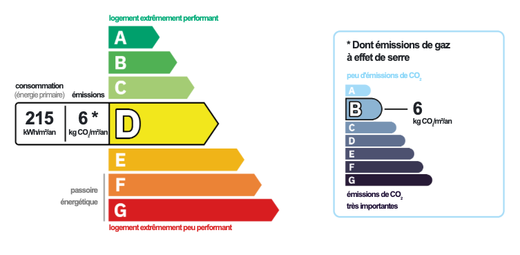 Date de diagnostic réalisé et classement :20/11/2025 - Etiquette D, 215 kWh/m²/an et 6kg Co2/m²/an étiquette B